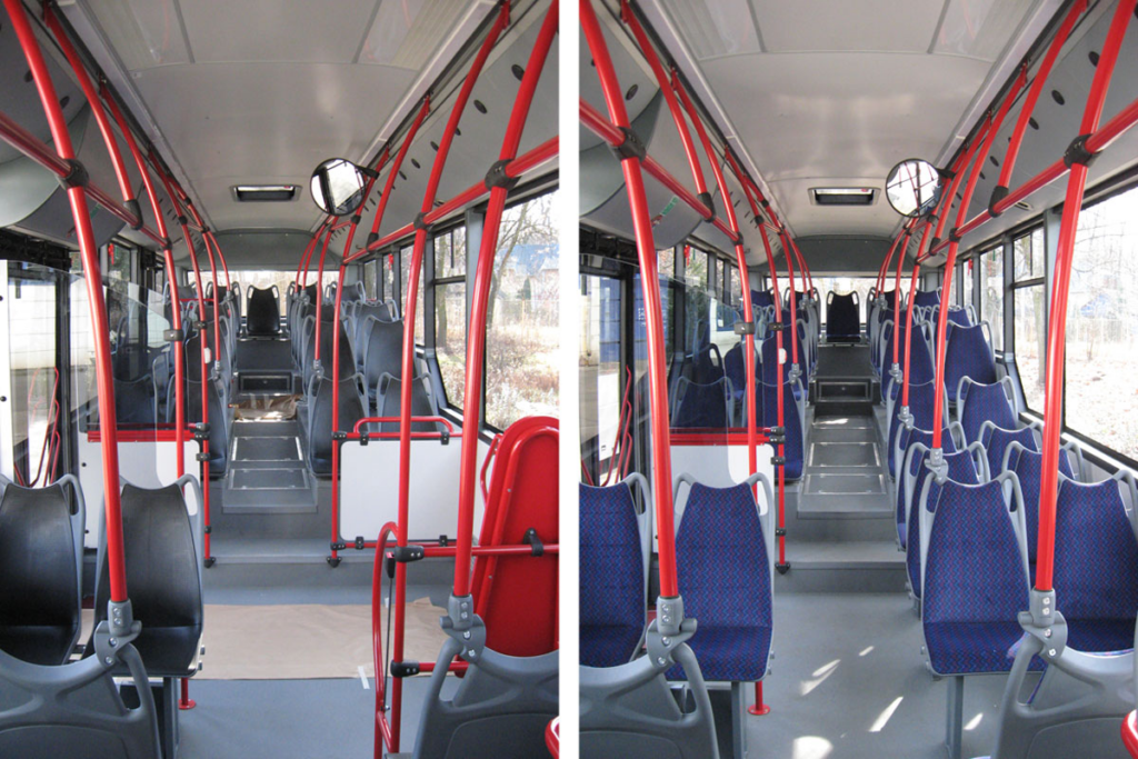 Novina su sedišta domaćeg proizvođača INTERPRODUKT iz Nove Varoši. Ovaj model, koji se ranije ugrađivao na naše autobuse, unapređen je u pogledu nagiba sedalnog dela, pa će sedišta biti udobnija.